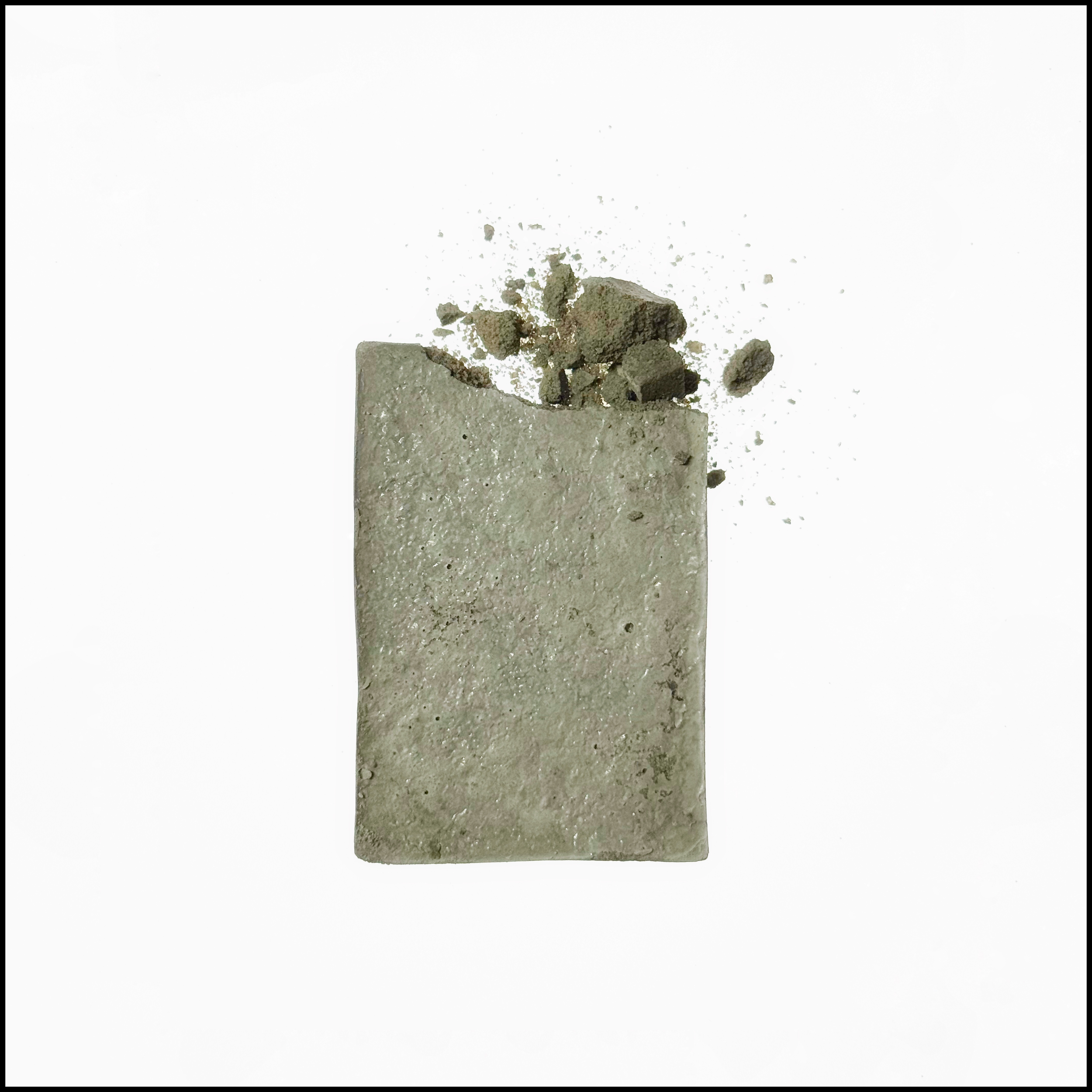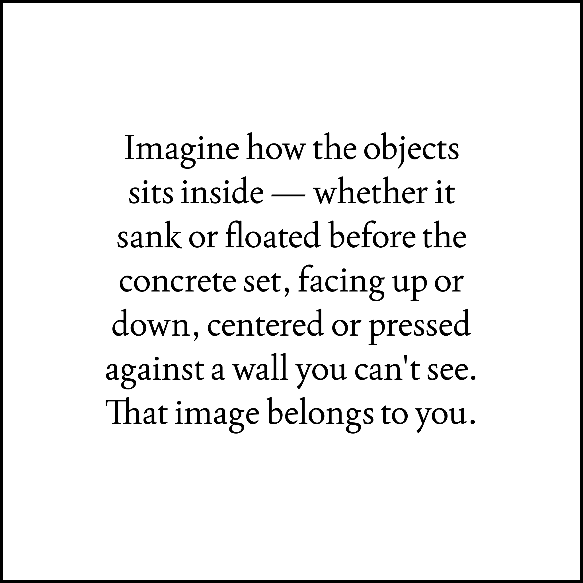 Three concrete blocks, each one sealed around an object: each object individually hold latent potential for further life.